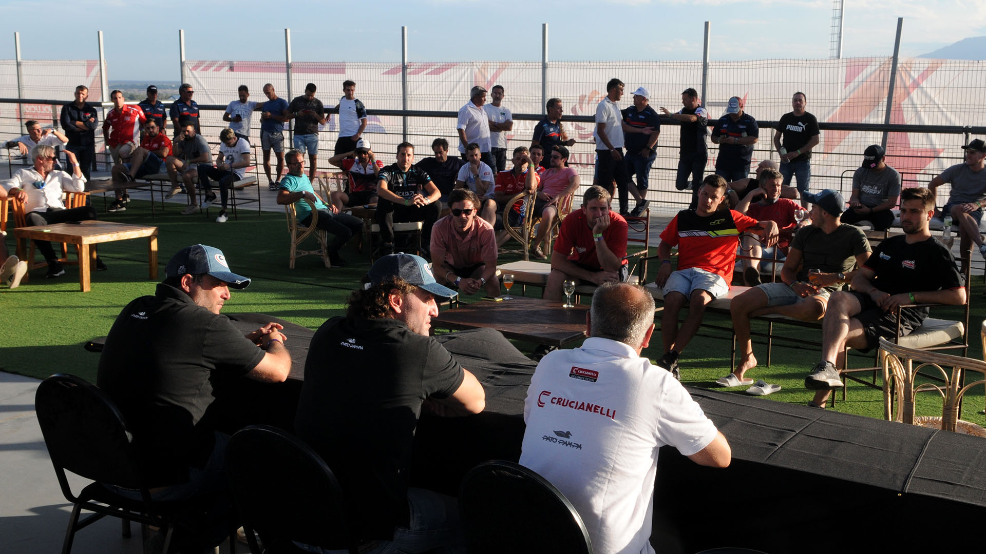 Durante la tarde de hoy, en la terraza de la zona de boxes del Circuito San Juan Villicum (Albardón, San Juan), el Presidente de APAT, Emanuel Moriatis; el Vicepresidente de APAT, Joel Borgobello, y Gustavo Cano, Tesorero de la entidad, ofrecieron un Informe de Gestión a los pilotos y equipos participantes del Campeonato Argentino 2021 Río Uruguay Seguros de TN-APAT Clase 2 y Clase 3.
